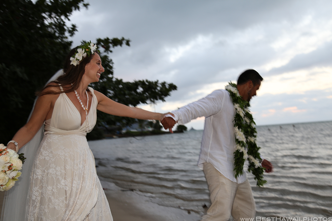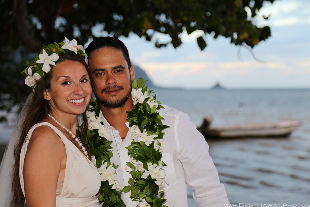 After an amazing Hawaiian Wedding at the gorgeous Haiku Gardens on Oahu this lucky newlywed couple headed to the beach to take some more awesome photos!